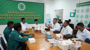 Manajer Komunikasi & TJLS PLN UID Kalbar, Mukhlis Zarkasih, menyampaikan program PLN Peduli kepada Ketua MUI Kalimantan Barat, Drs. KH. Basri Har., sebagai bentuk komitmen terhadap keberlanjutan kolaborasi dalam pengurusan sertifikasi halal bagi pelaku UMKM binaan.(FOTO/DOK/PLN)